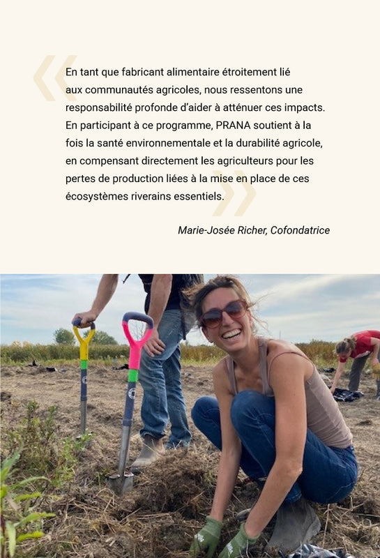 À travers notre collaboration avec le Programme Carbone Riverain d’Arbre-Évolution, nous parrainons la plantation de bandes riveraines végétalisées, barrières naturelles le long des cours d'eau, en milieu agricole partout au Québec. Ces initiatives soutiennent directement les
